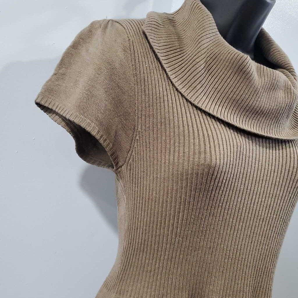 Cap Sleeve Cowl Neck Ribbed Knit Sweater โ