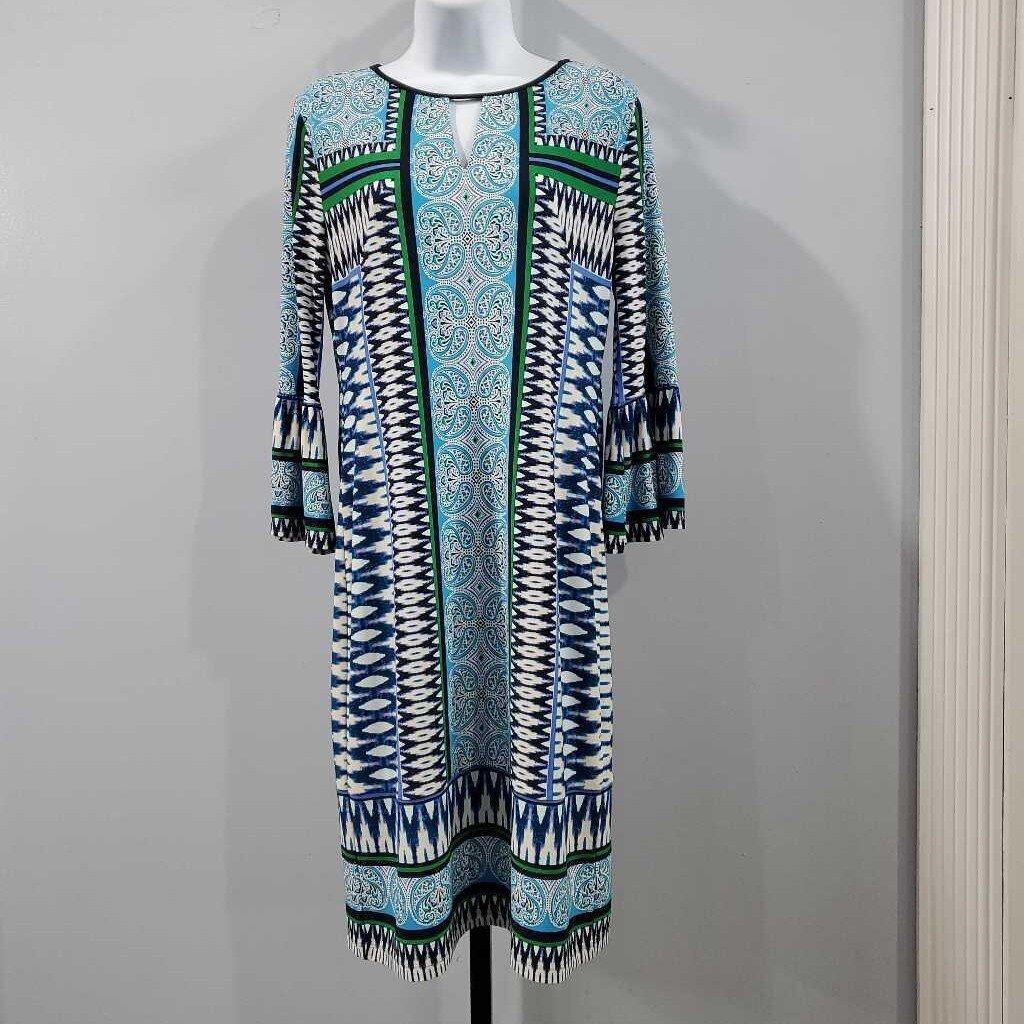 Long Sleeve Mixed Print Knit Dress, Chico's Size 0 β