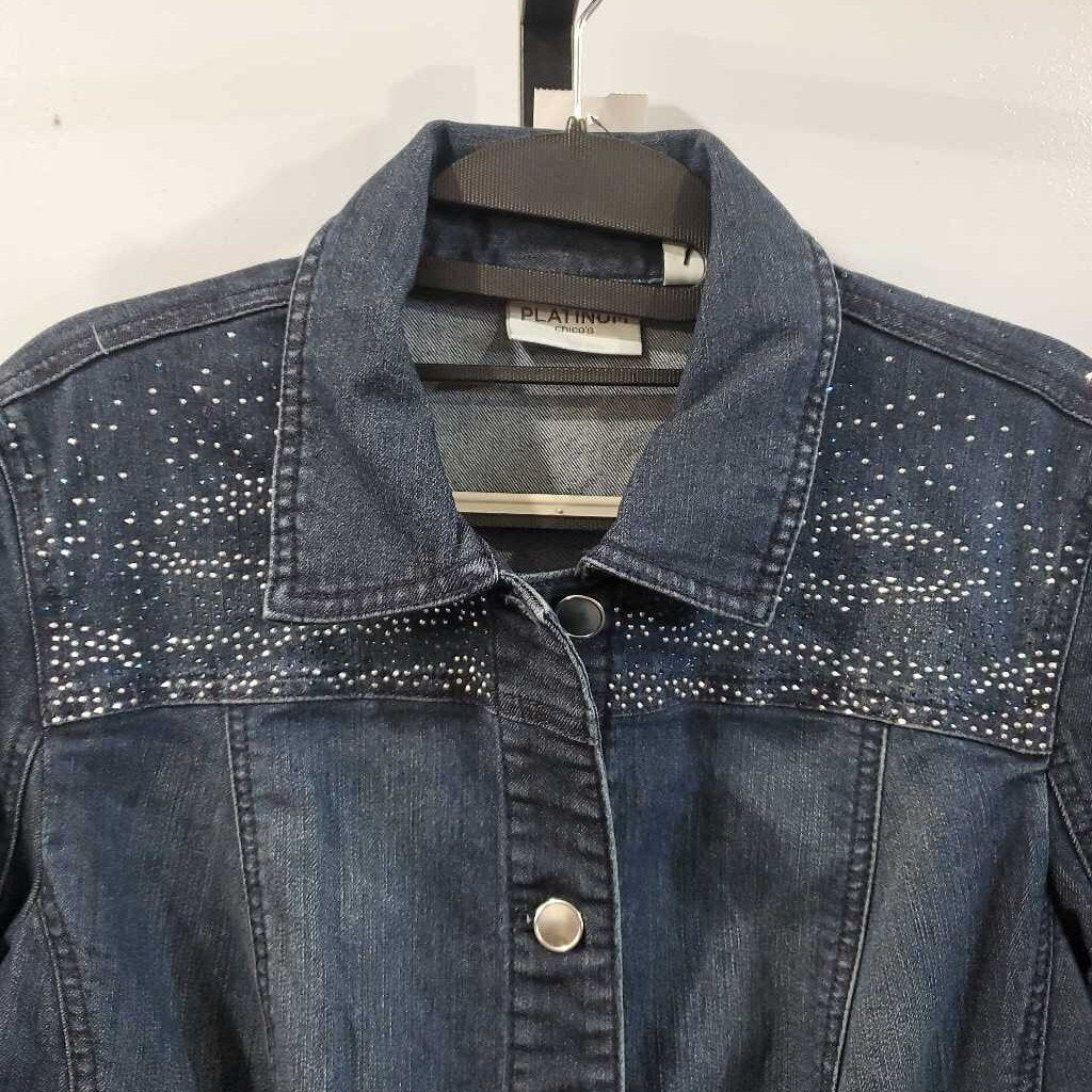 Long Sleeve Embellished Denim Jacket, Chico's Size 1 β