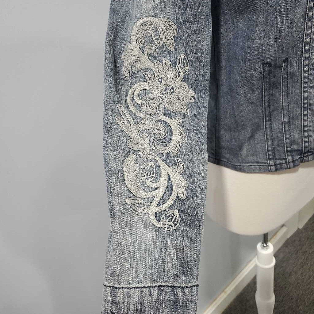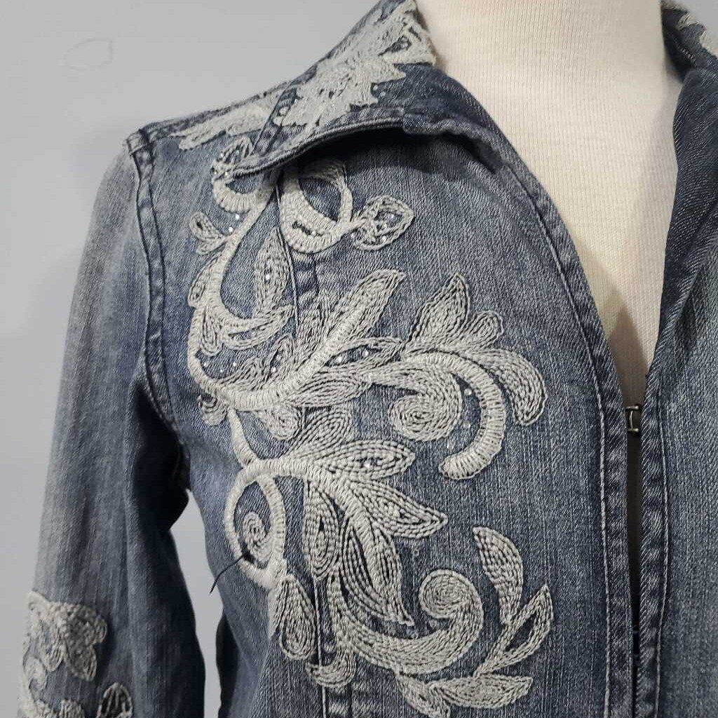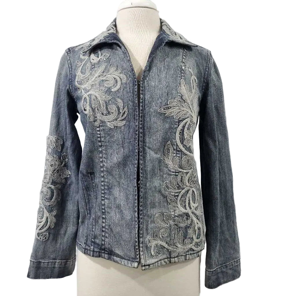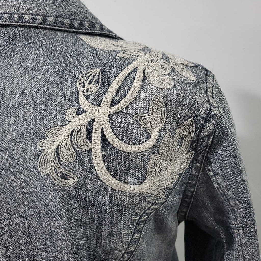 Long Sleeve Embroidered Denim Jacket, Chico's Size 0 โ