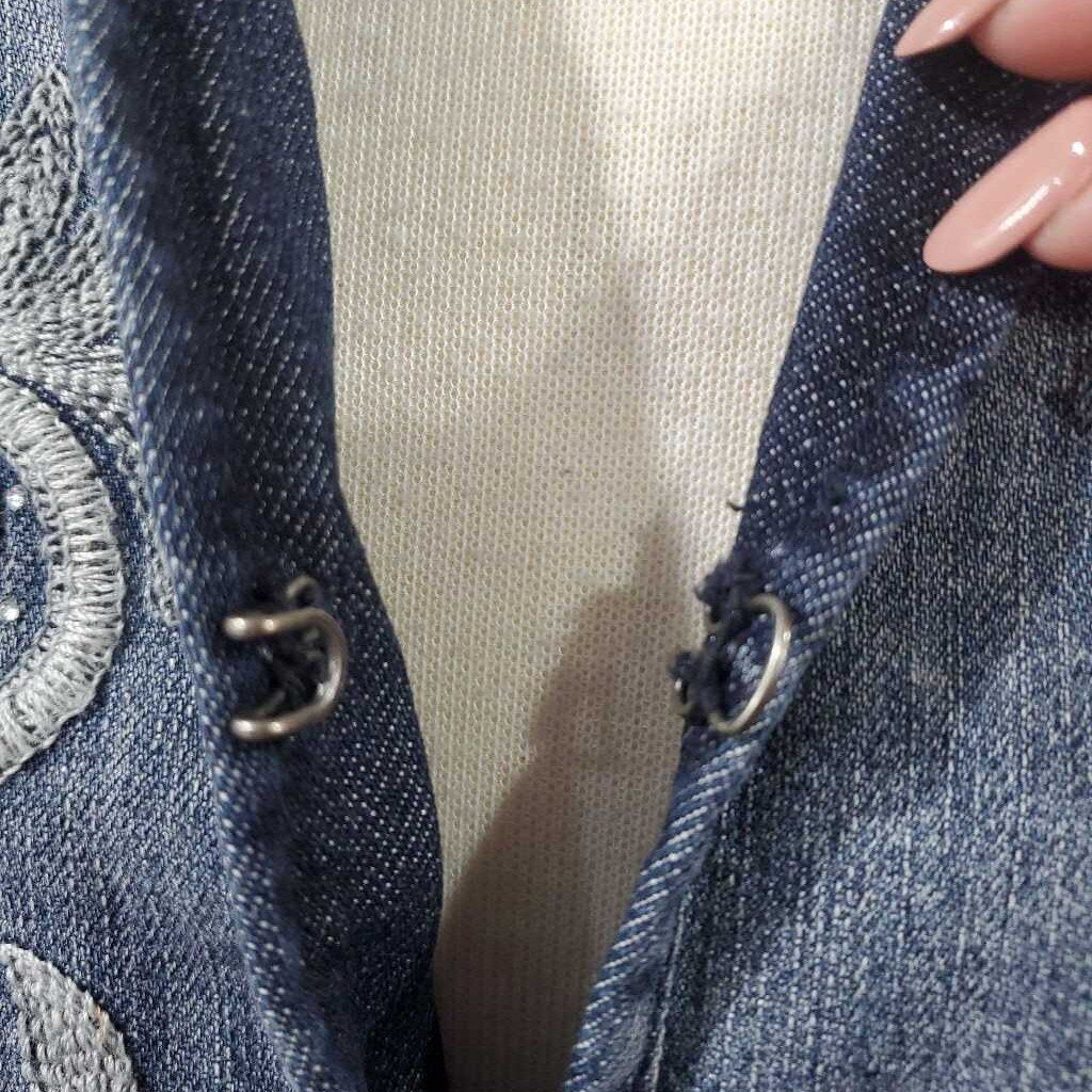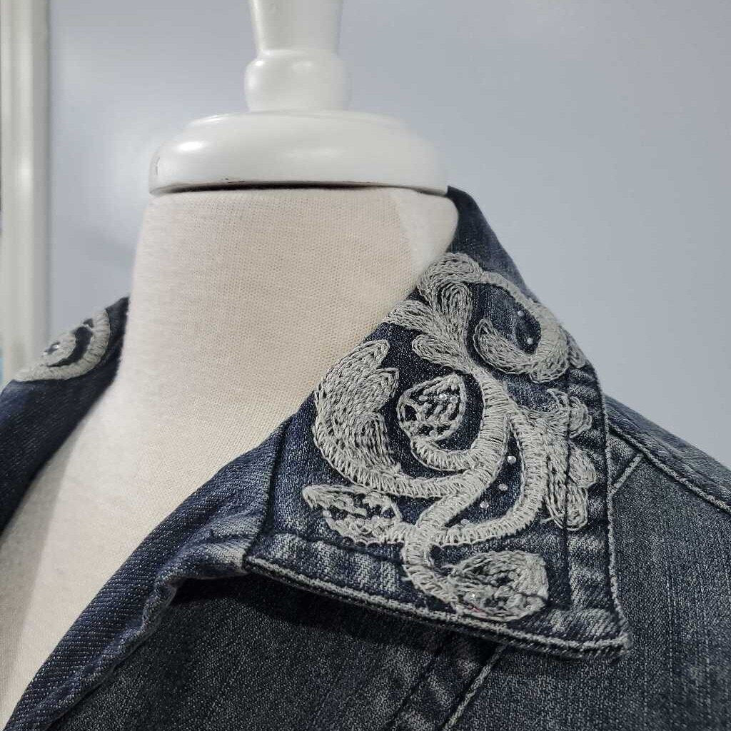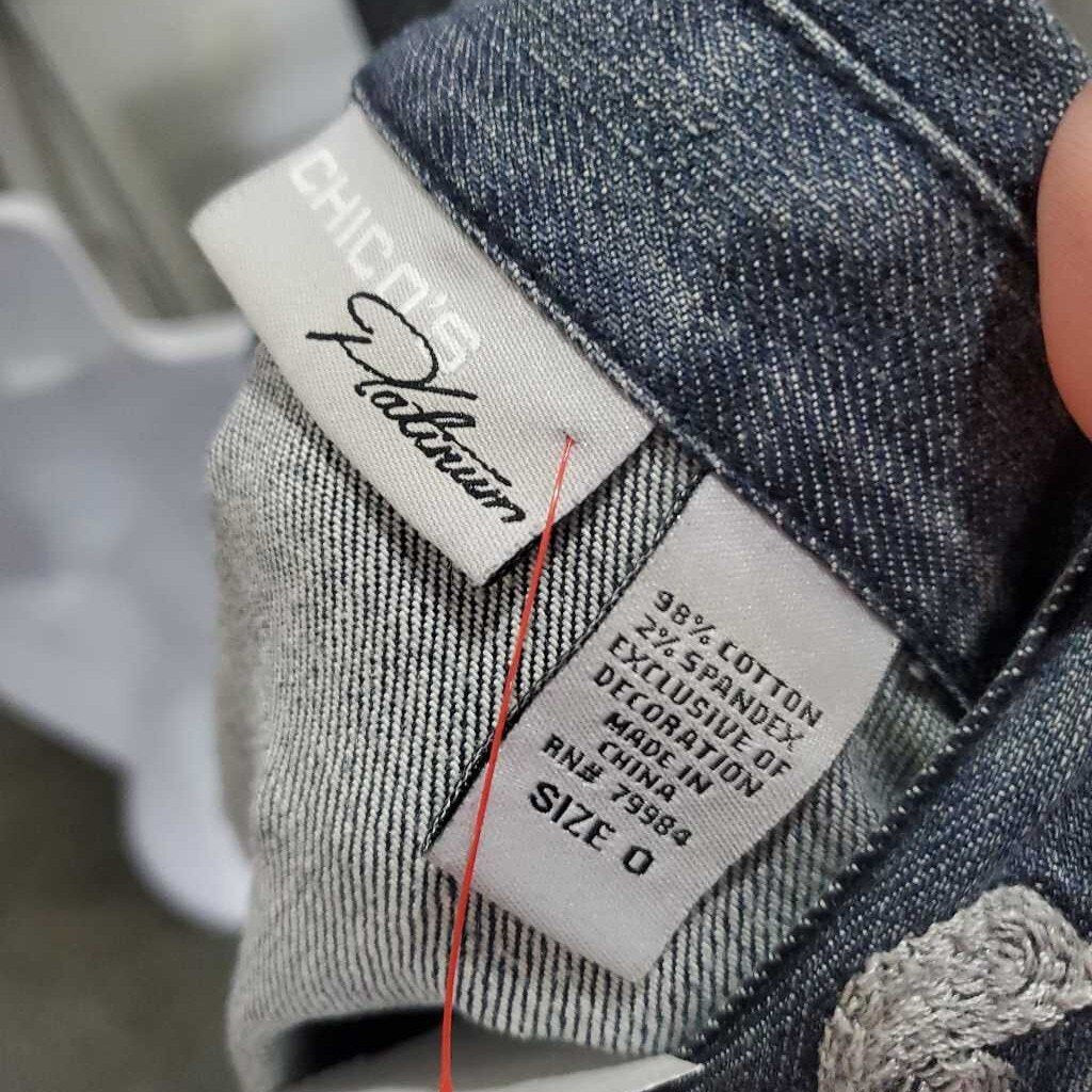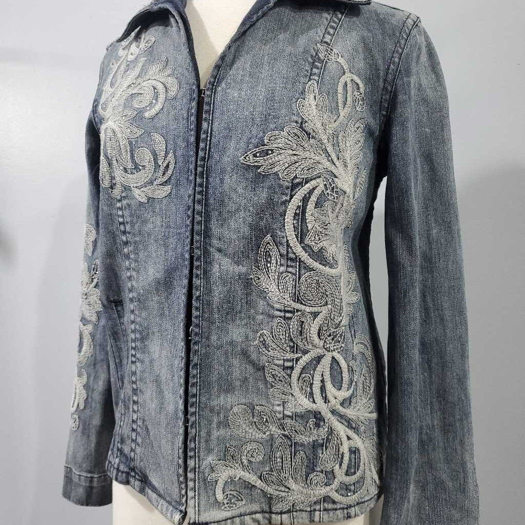 Long Sleeve Embroidered Denim Jacket, Chico's Size 0 โ