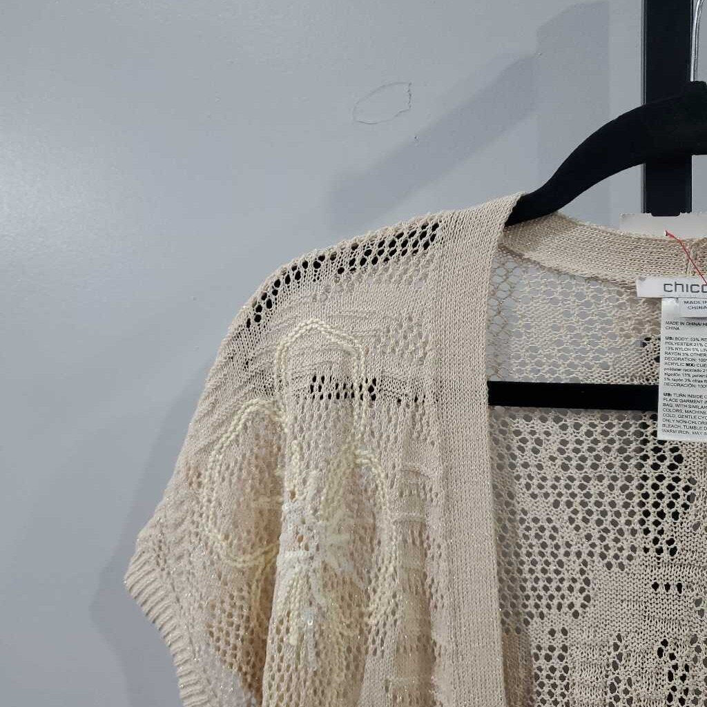 Cap Sleeve Sequin Metallic Accent Lace Vest, Chico's Size 2 β