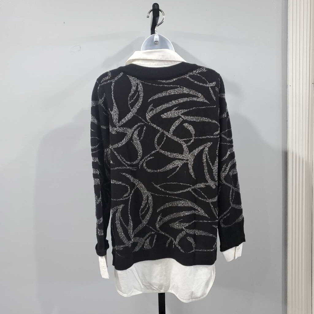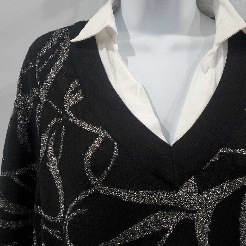 Faux 2pc Long Sleeve Metallic Design Sweater β