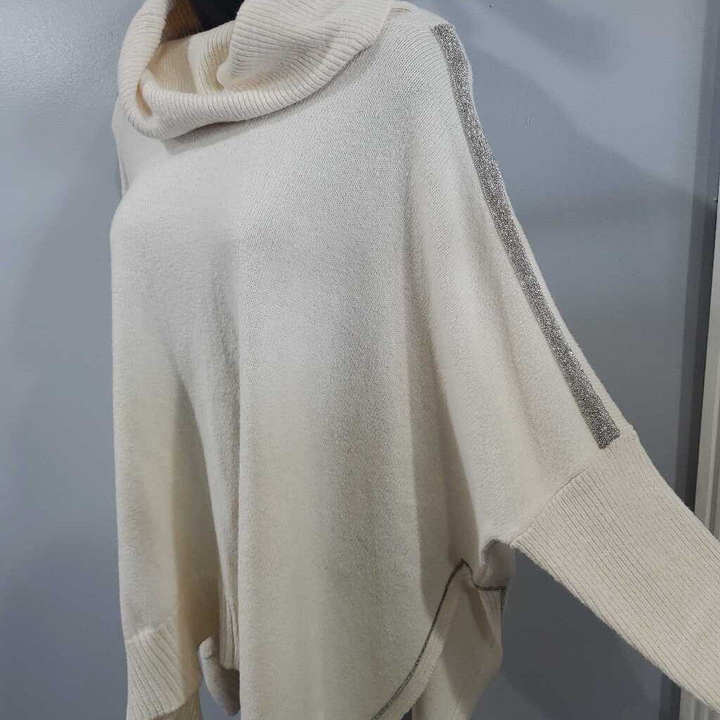 Long Sleeve Metallic Accent Cowl Neck Sweater β