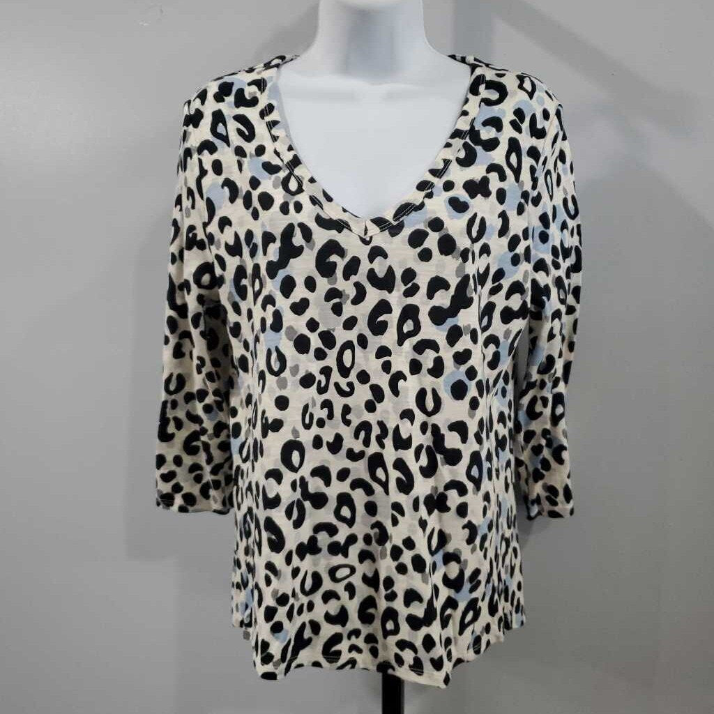Long Sleeve Leopard print High/Low Top, Cotton Blend, Chico's size 0 β