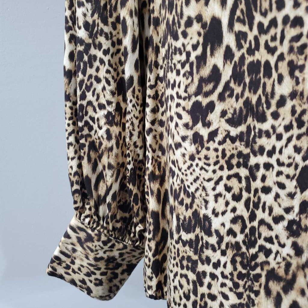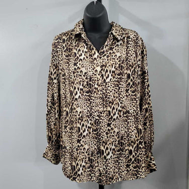 Long Sleeve Leopard Print Half Button Top, Chico's Size 1 β