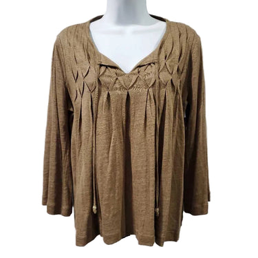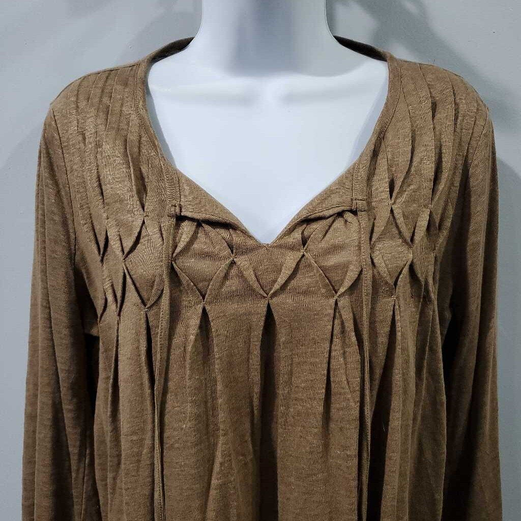 Long Sleeve Split Neck Pleated Knit Top, Chico's Size 0 β