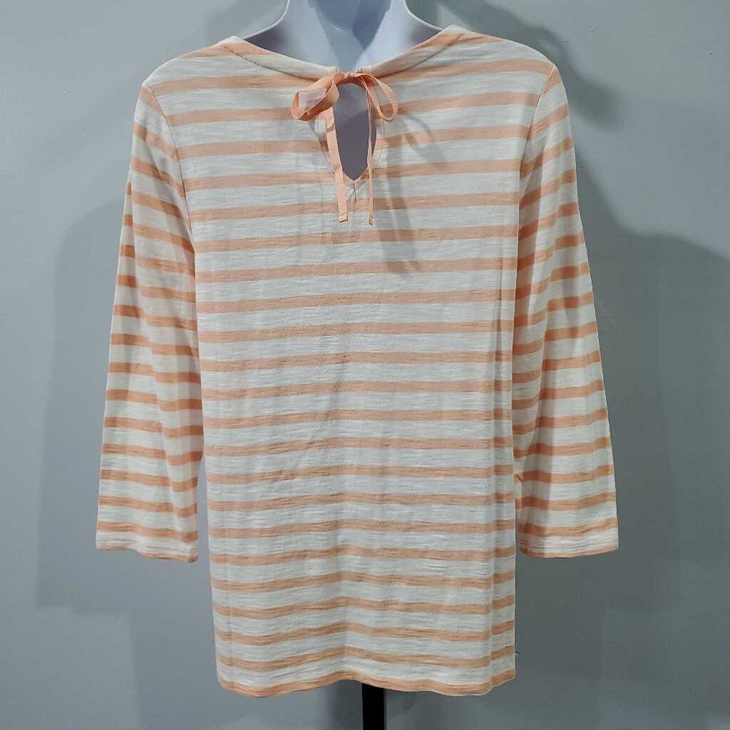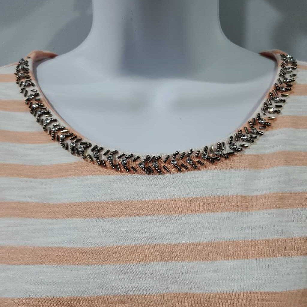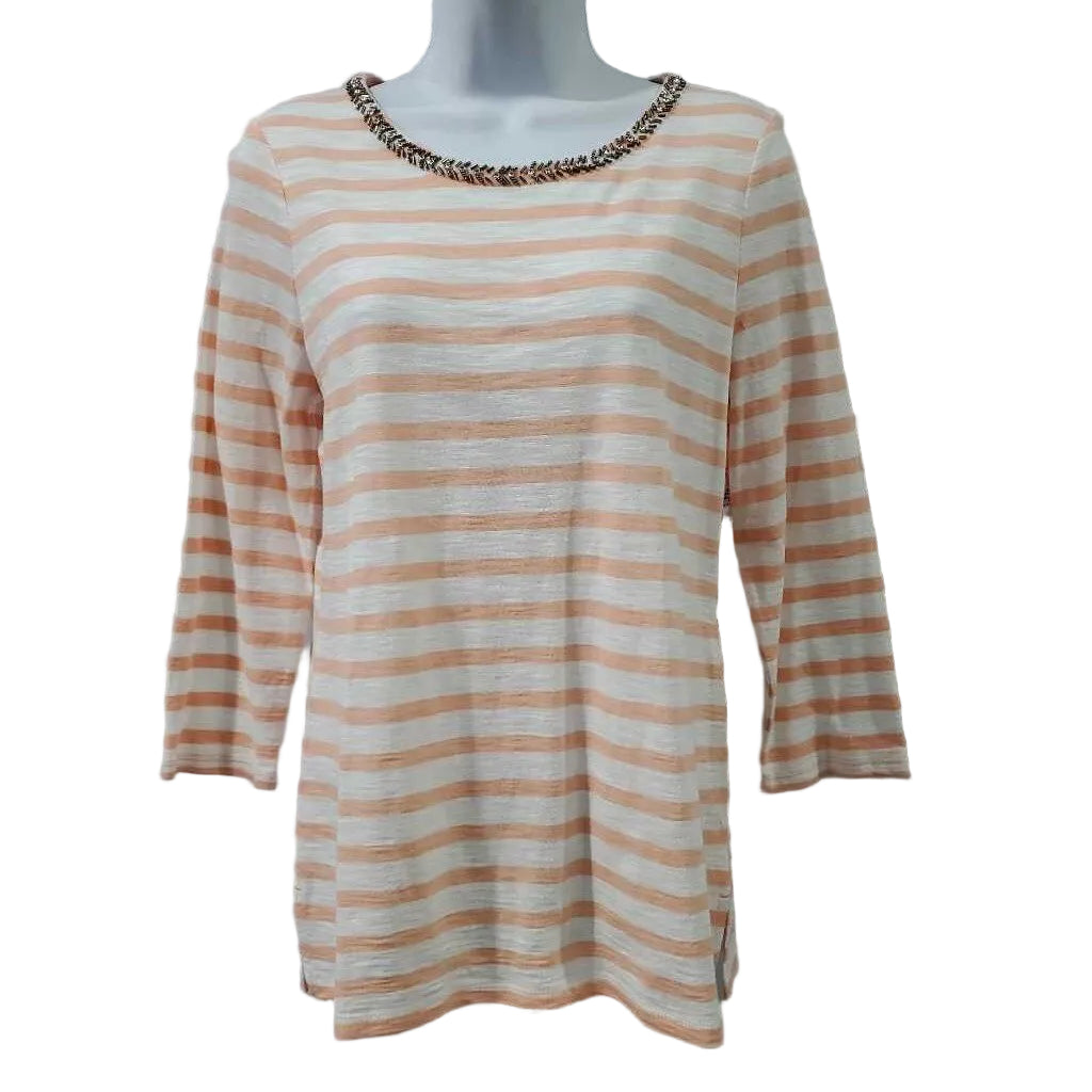 3/4 Sleeve Striped Embellished Neck Knit Top, Chico's Size 0 β