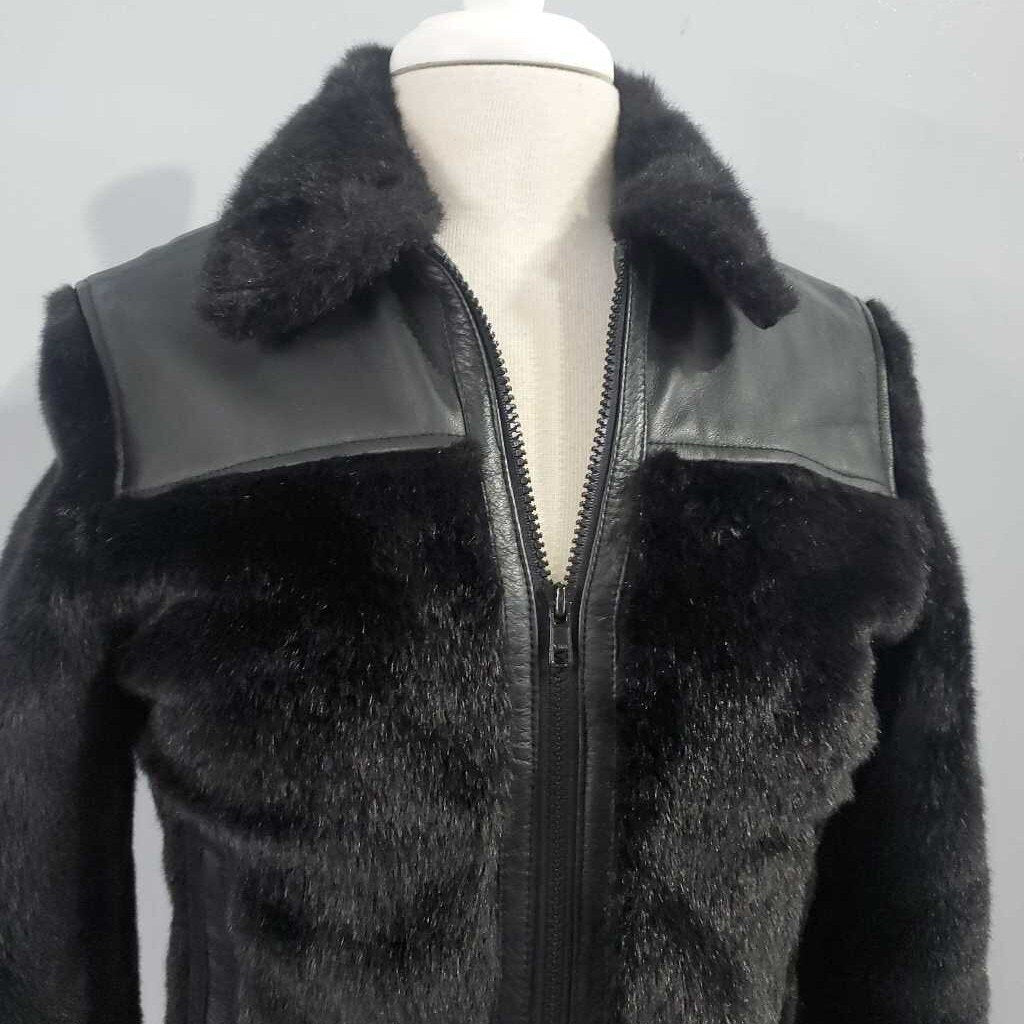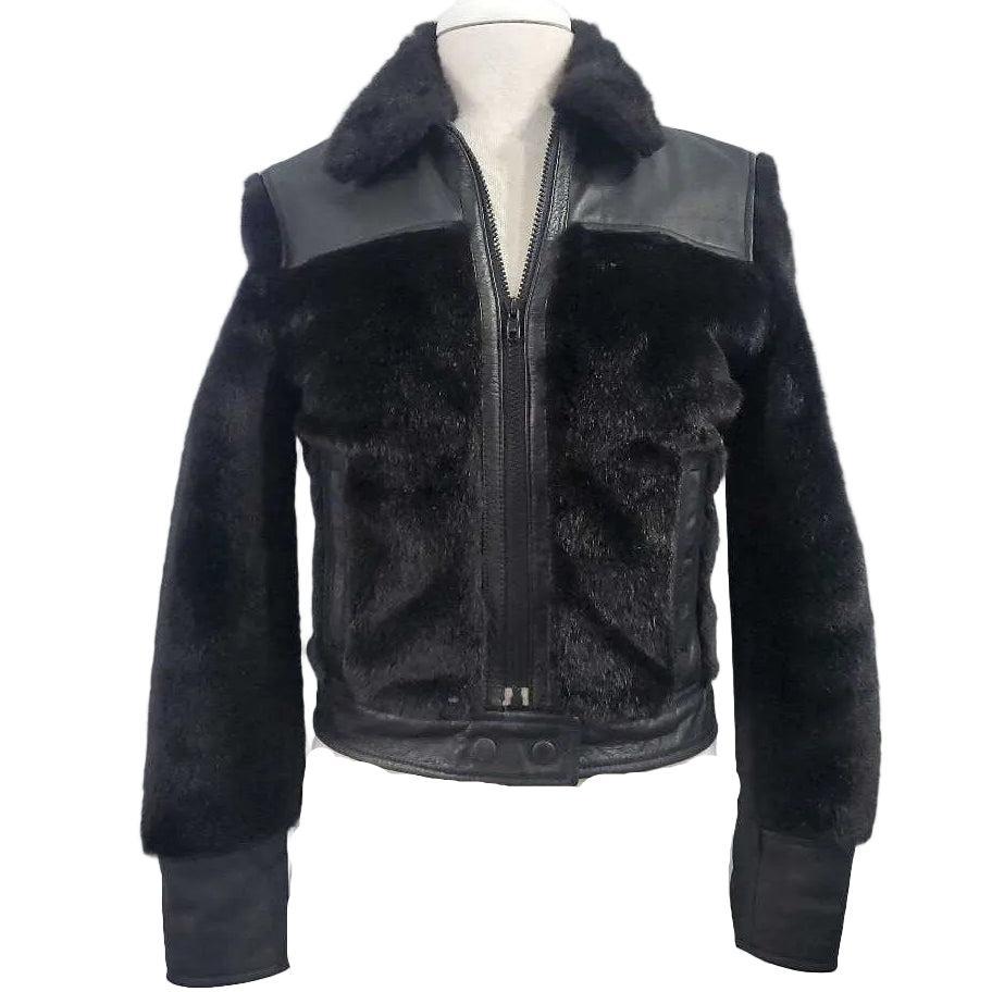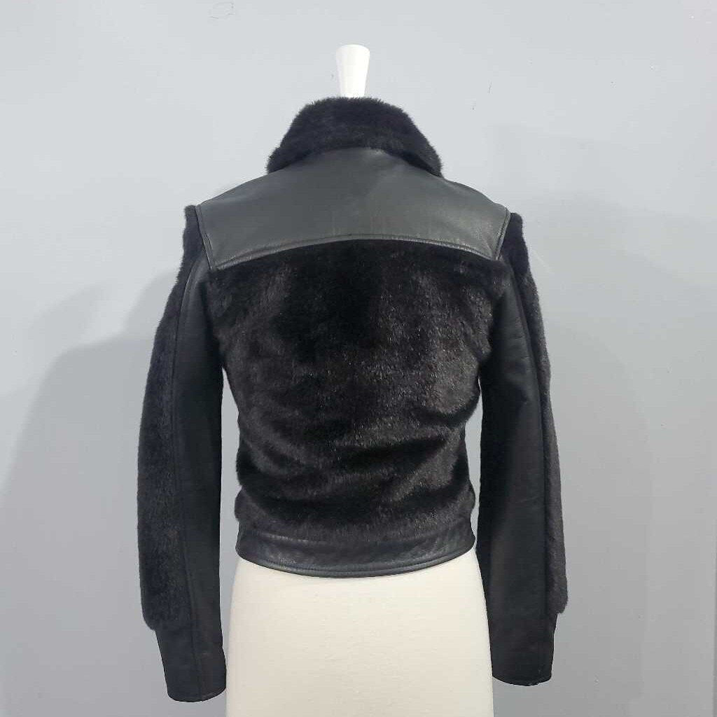 Long Sleeve Leather Accent Faux Fur Bomber Jacke β
