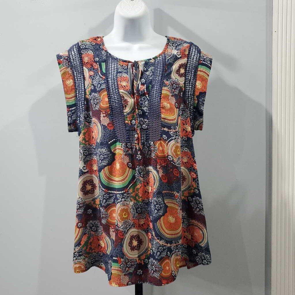 Cap Sleeve Tie Front Moroccan Print Top ✅ Triple inspected for quality, condition & authenticity! 💯 Authenticity guaranteed or money back. ❓ Questions? Contact us. 📍 Ships from Enterprise, AL.
