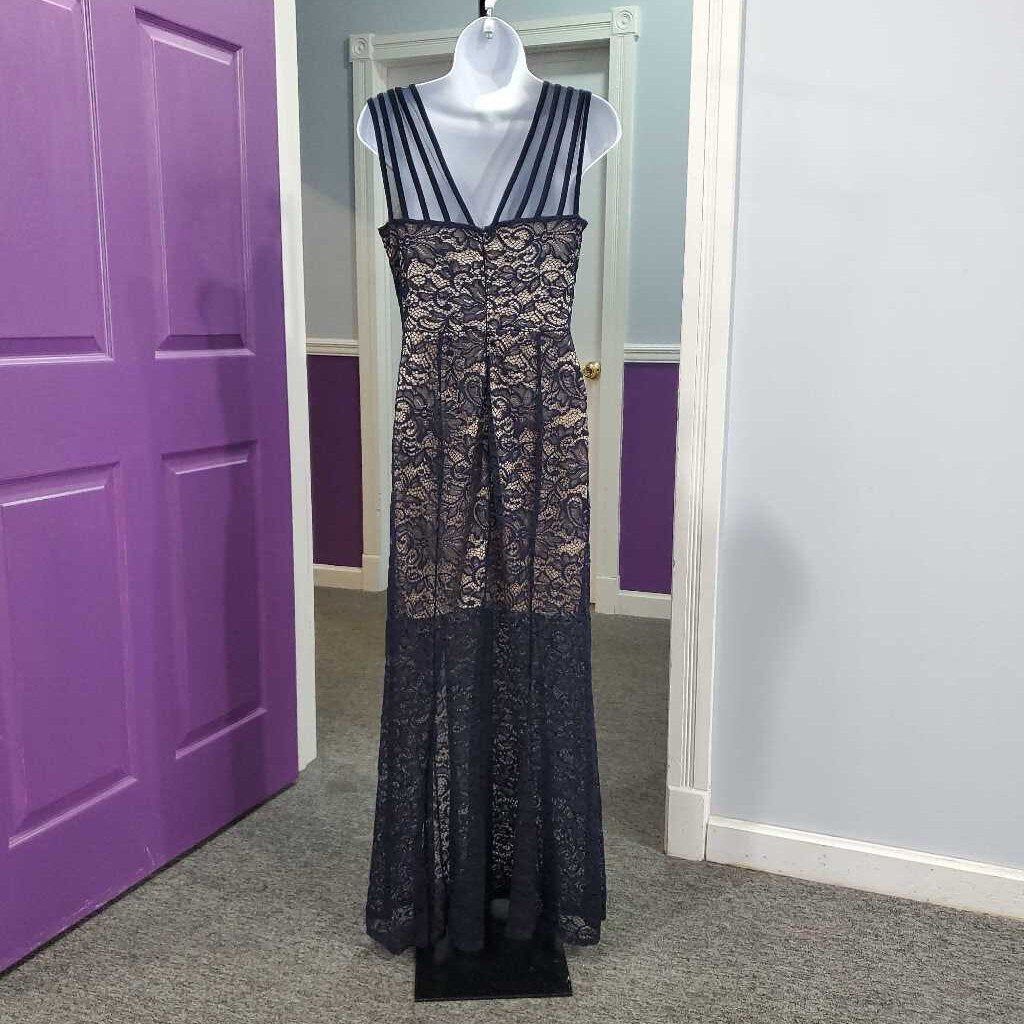 Sleeveless, Rhinestone ,Lace, Floral ,Special Event, with Back Zipper, Lined, Very dark navy ✅ Triple inspected for quality, condition & authenticity! 💯 Authenticity guaranteed or money back. ❓ Questions? Contact us. 📍 Ships from Enterprise, AL.