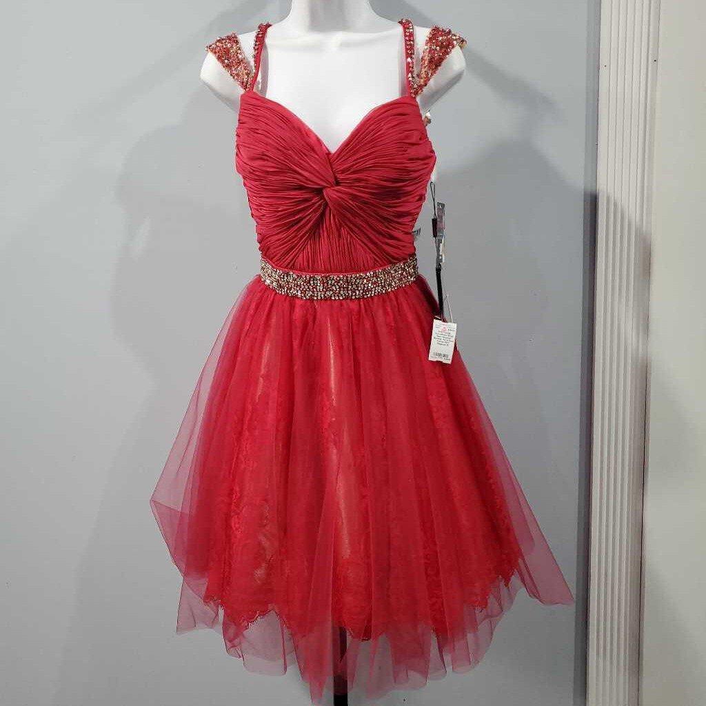 Strap Open Shoulder Beaded Embellished Floral Semi Formal NWT, Rhinestone Belt Floral Lace Tulle, Back Zipper, Very dark magenta ✅ Triple inspected for quality, condition & authenticity! 💯 Authenticity guaranteed or money back. ❓ Questions? Contact us. 📍 Ships from Enterprise, AL.