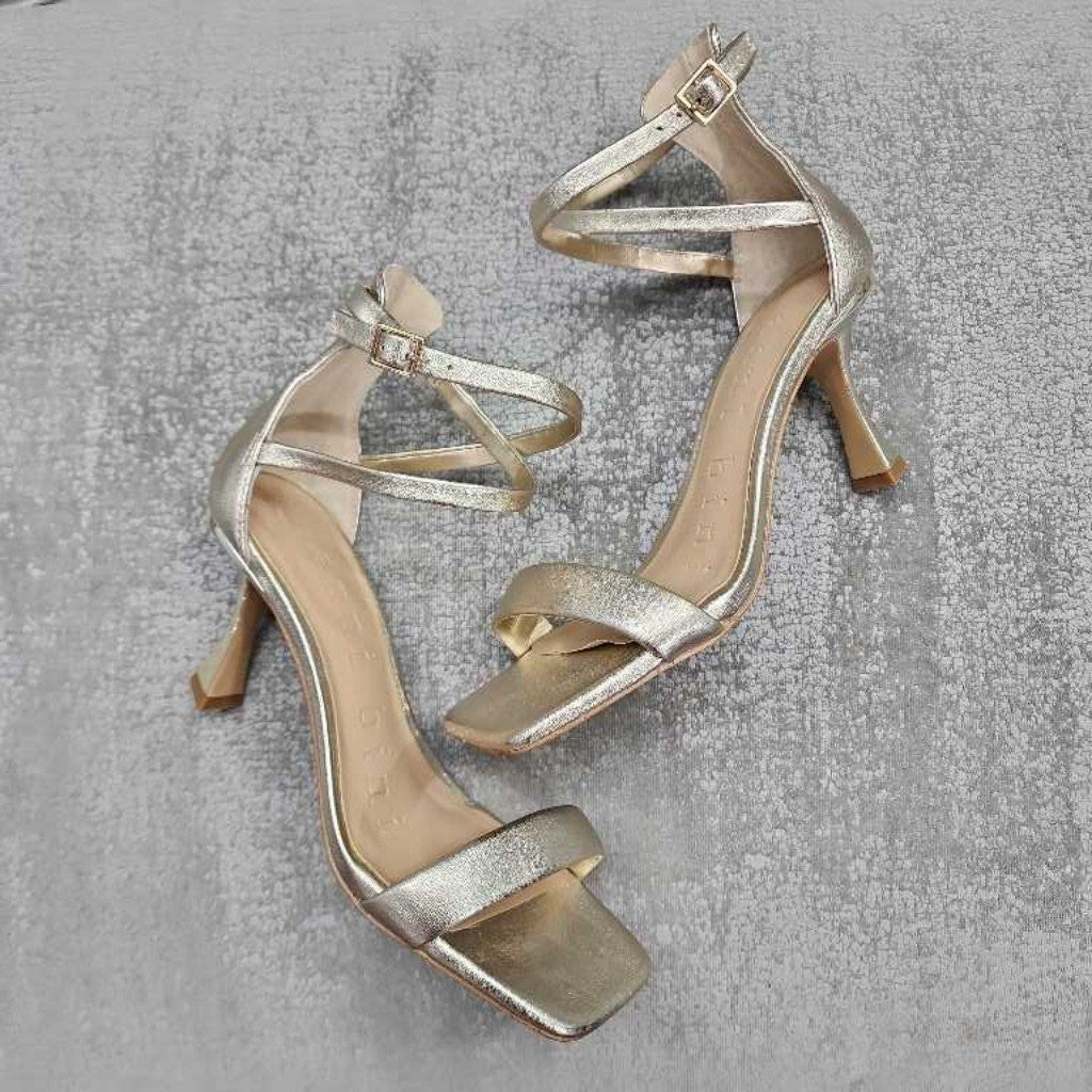 Metallic Ankle Strap Open Toe Heels β