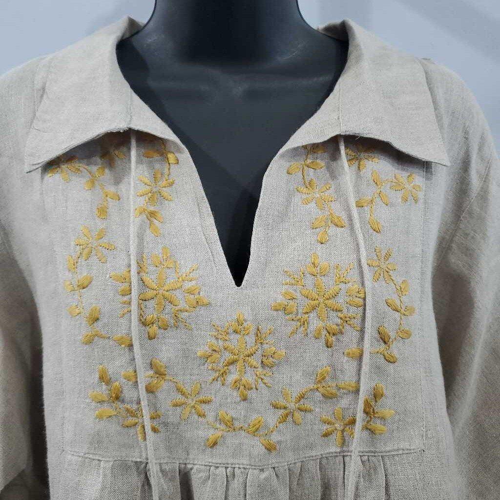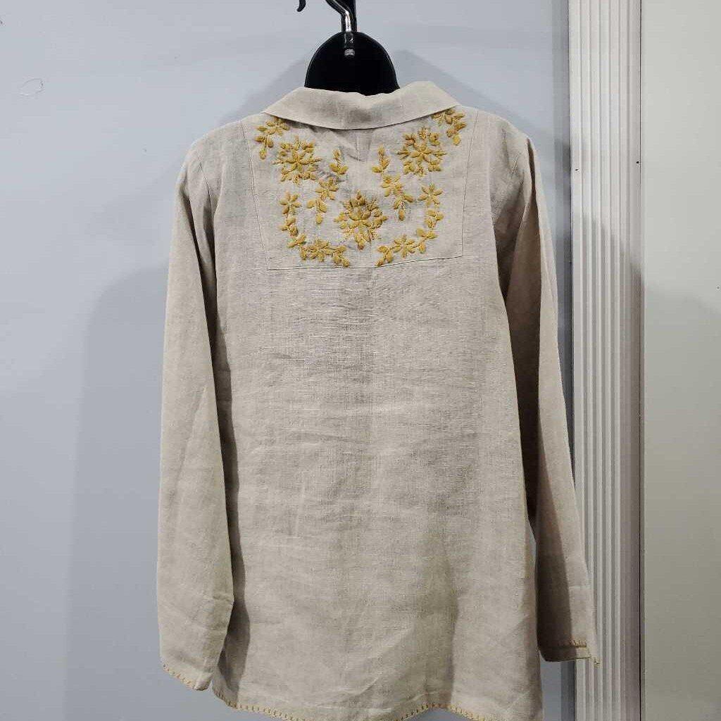 Long Sleeve Linen Blend Embroidered Top ✅ Triple inspected for quality, condition & authenticity! 💯 Authenticity guaranteed or money back. ❓ Questions? Contact us. 📍 Ships from Enterprise, AL.