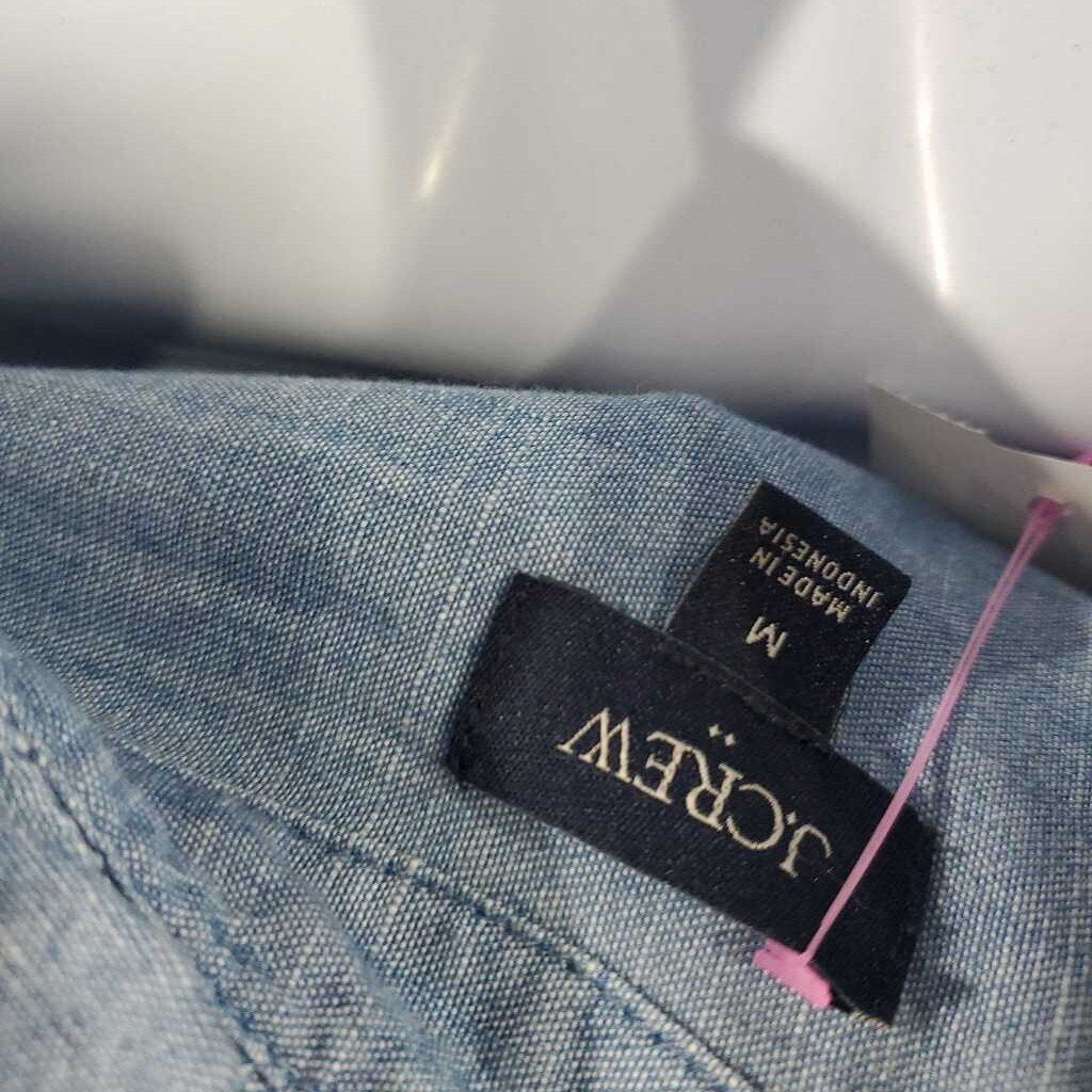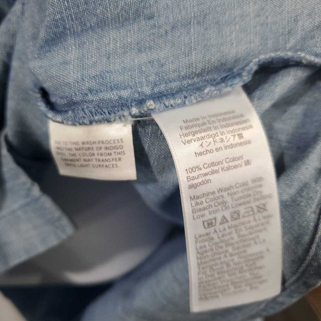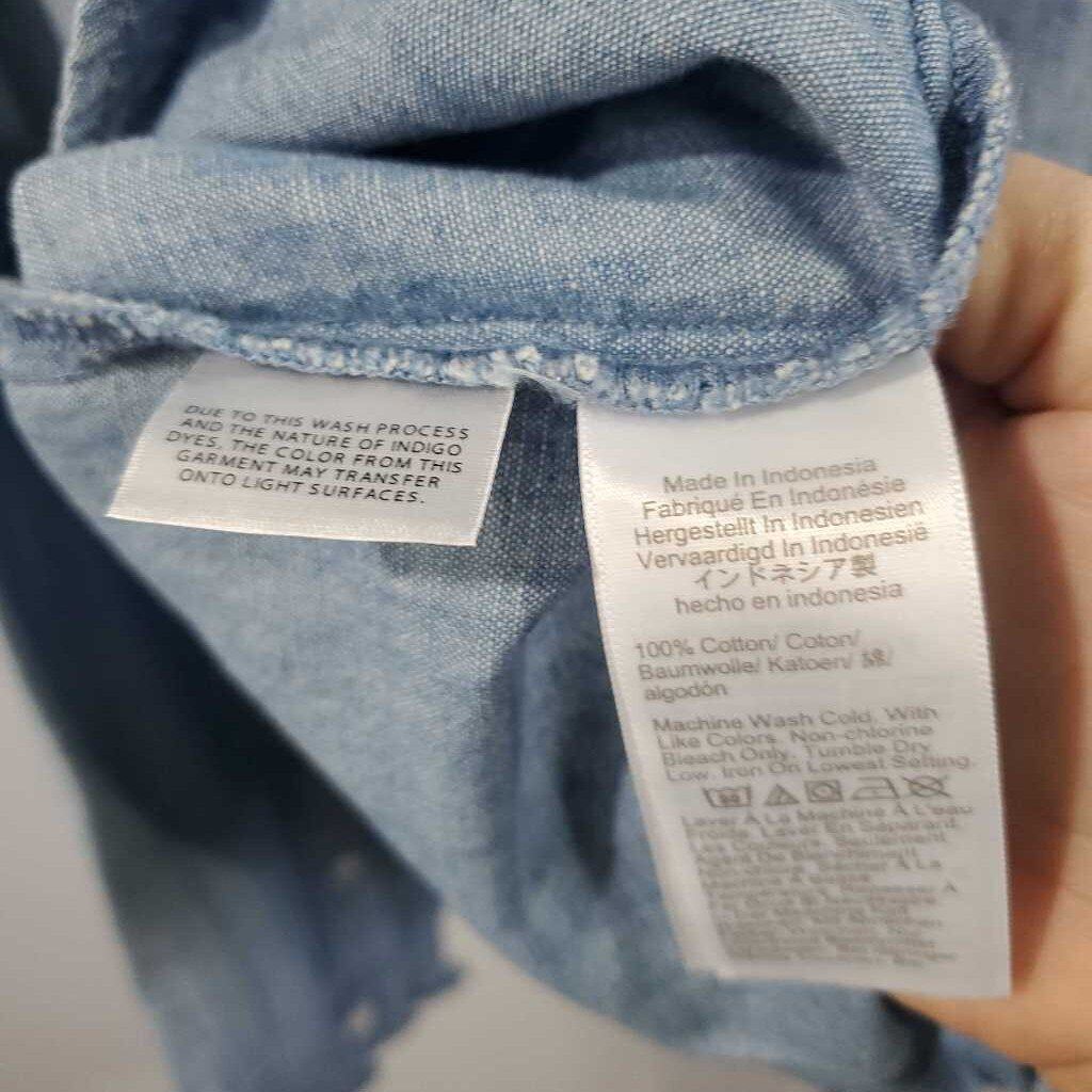 Long Sleeve Ruffle Accent Chambray Button Up Top