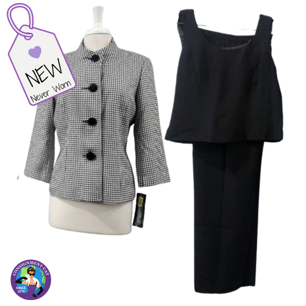 3 Piece Pantsuit, Houndstooth Jacket and Tank Top, NWT ✅ Triple inspected for quality, condition, & authenticity! 💯 Authenticity guaranteed or money back. ❓ Questions? Contact us. 📍 Ships from Enterprise, AL.
