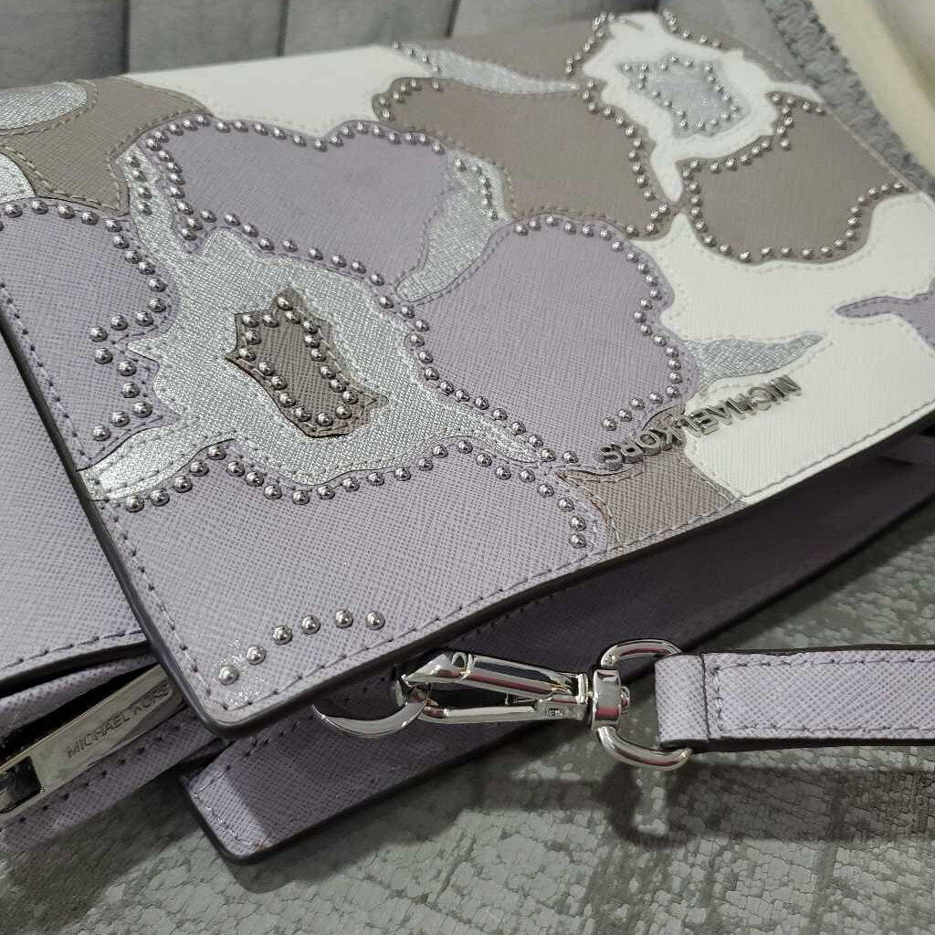 Stylish Michael Kors Selma medium messenger bag featuring a lilac multi floral design with rhinestone embellishments, perfect for daily use or special occasions. ✅ Triple inspected for quality, condition & authenticity! 💯 Authenticity guaranteed or money back. ❓ Questions? Contact us. 📍 Ships from Enterprise, AL.
