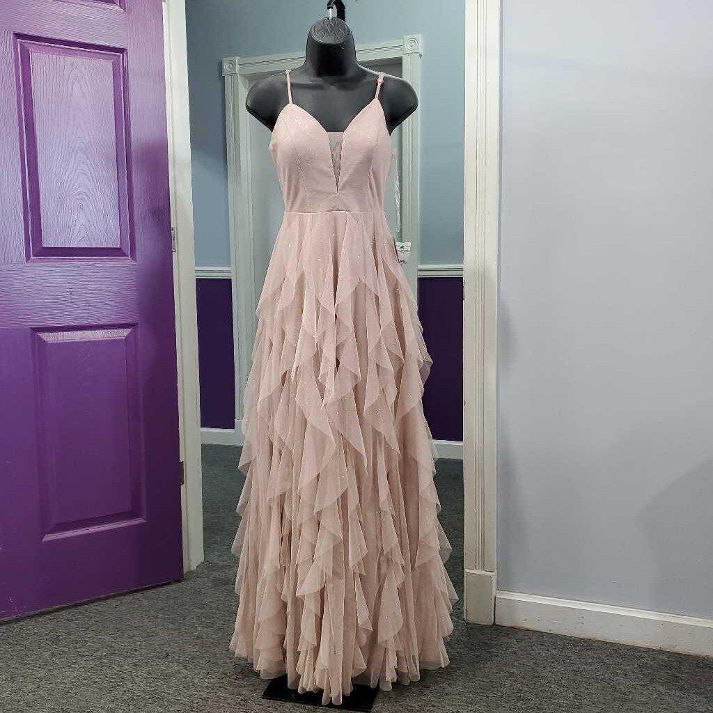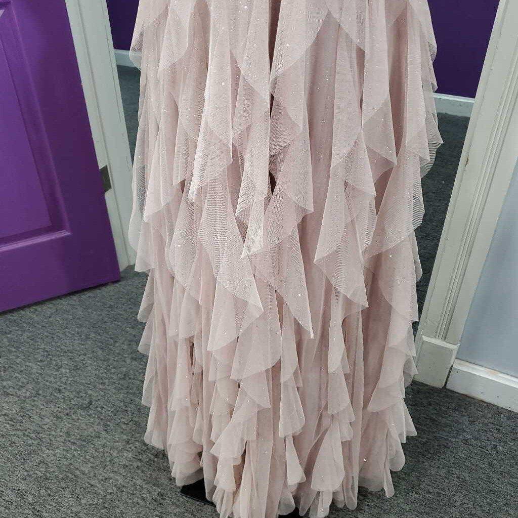 Adjustable Strap Glitter Ruffles Formal NWT ideal for prom, gala, ball, or formal events ā