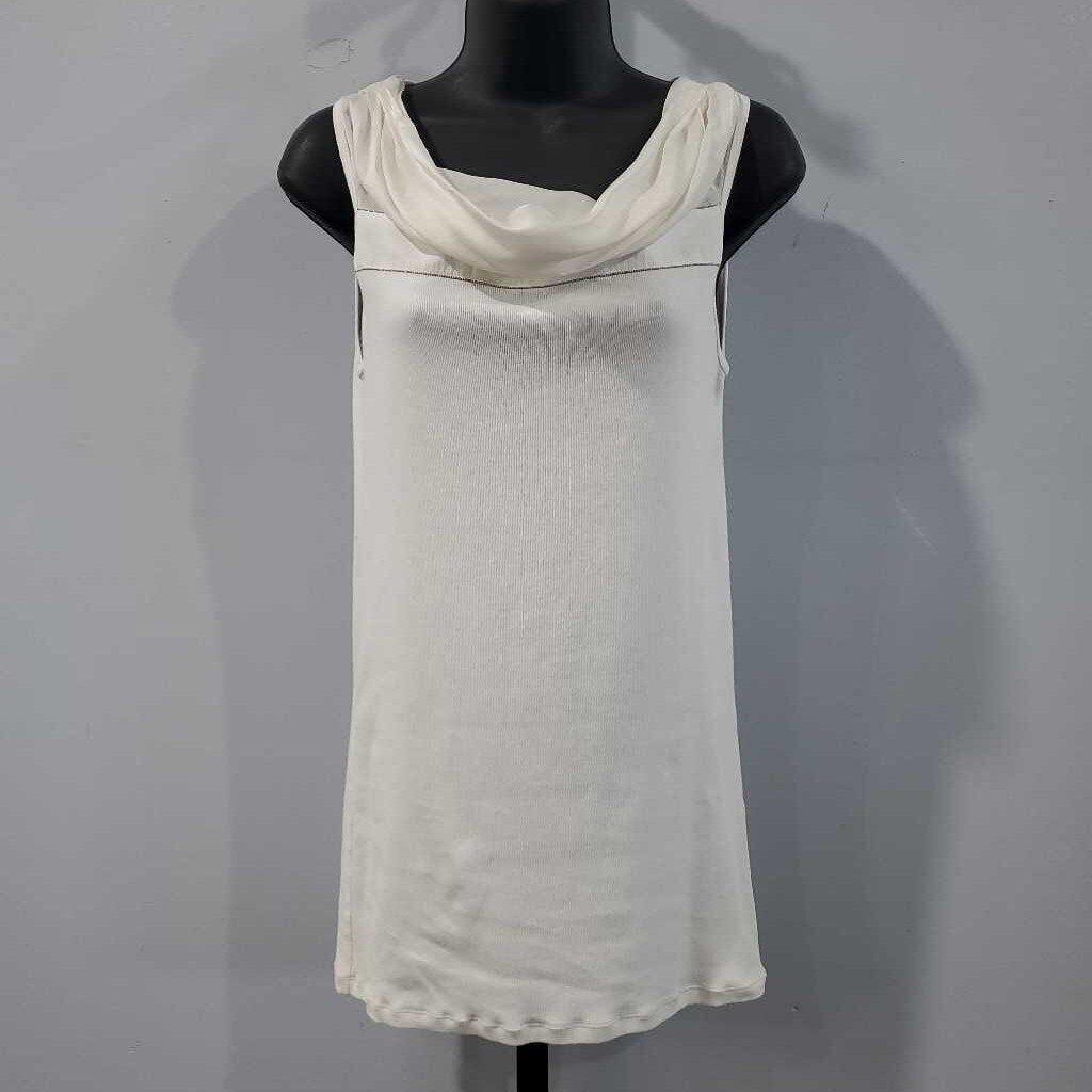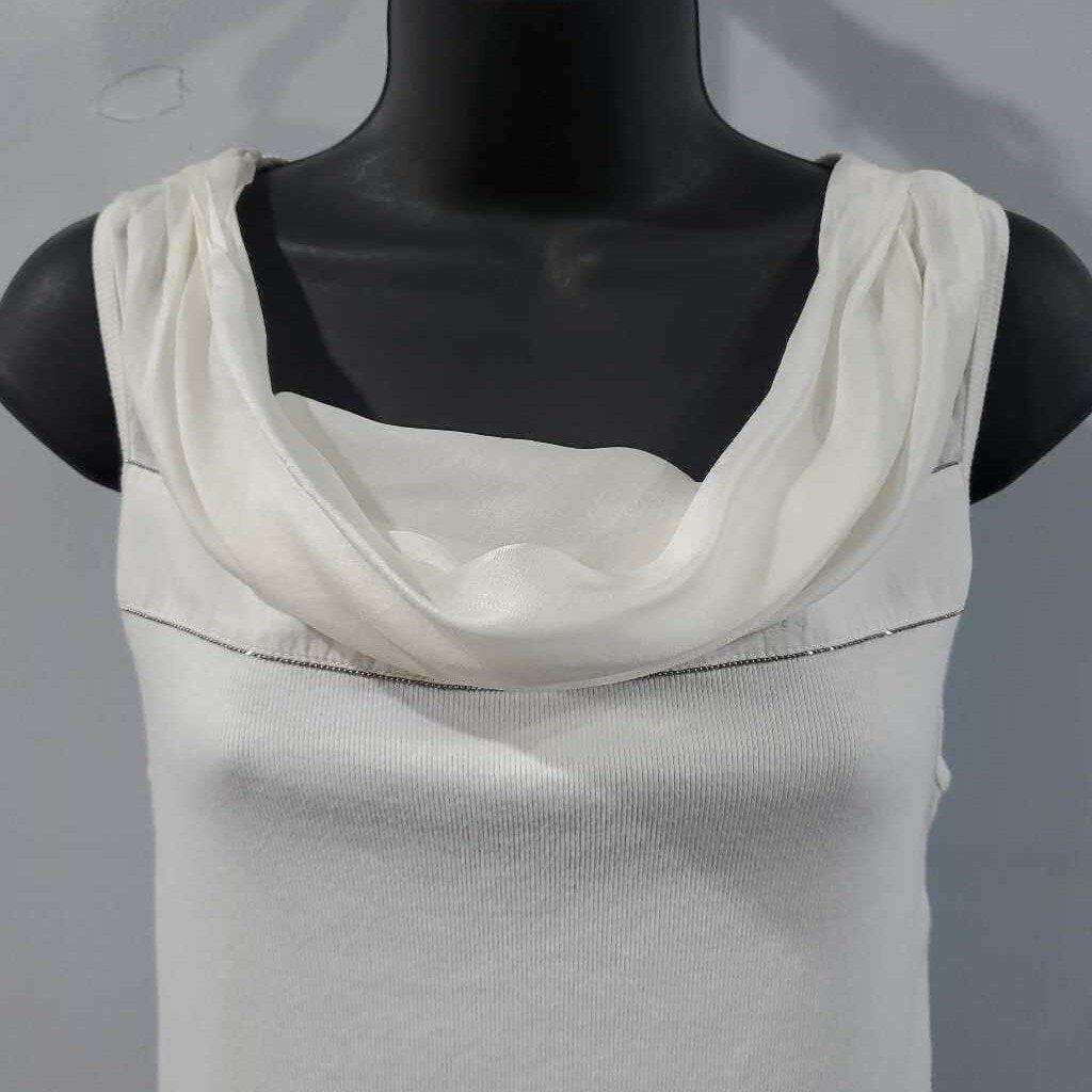 Sleeveless Drape Neck Embellished Knit Top, Tag says XL but fits more like a medium ✅ Triple inspected for quality, condition & authenticity! 💯 Authenticity guaranteed or money back. ❓ Questions? Contact us. 📍 Ships from Enterprise, AL.