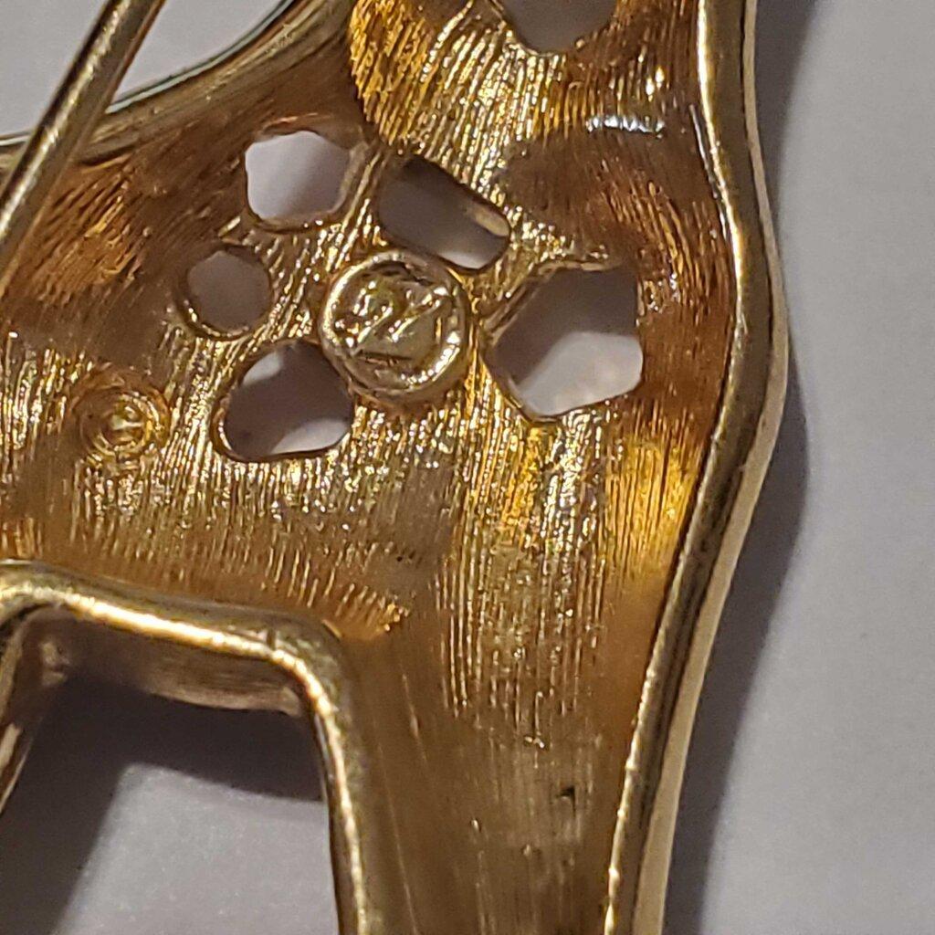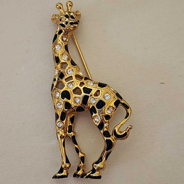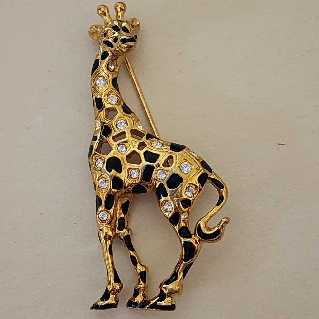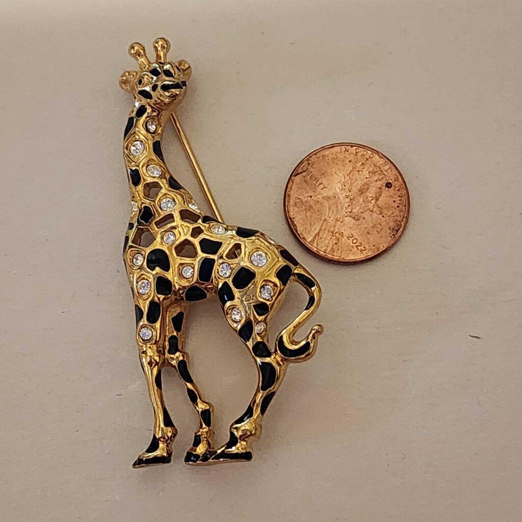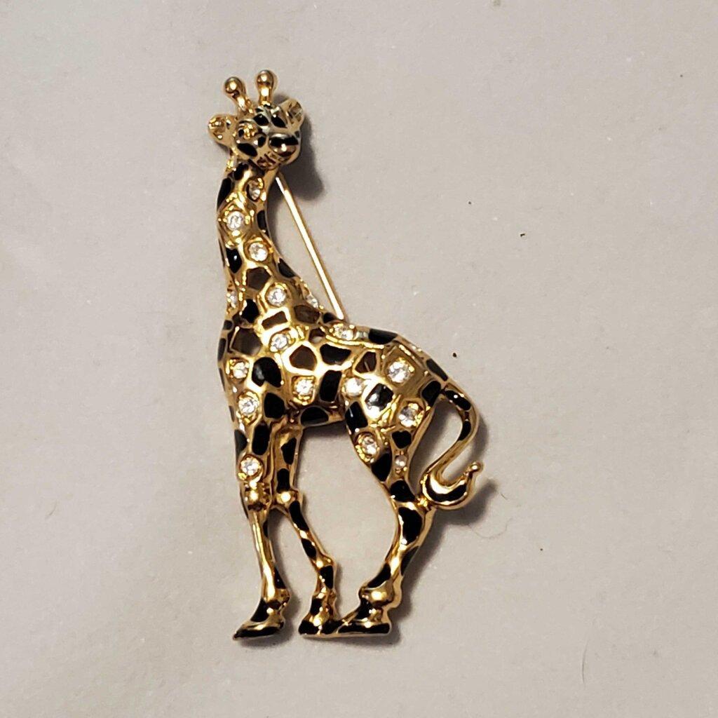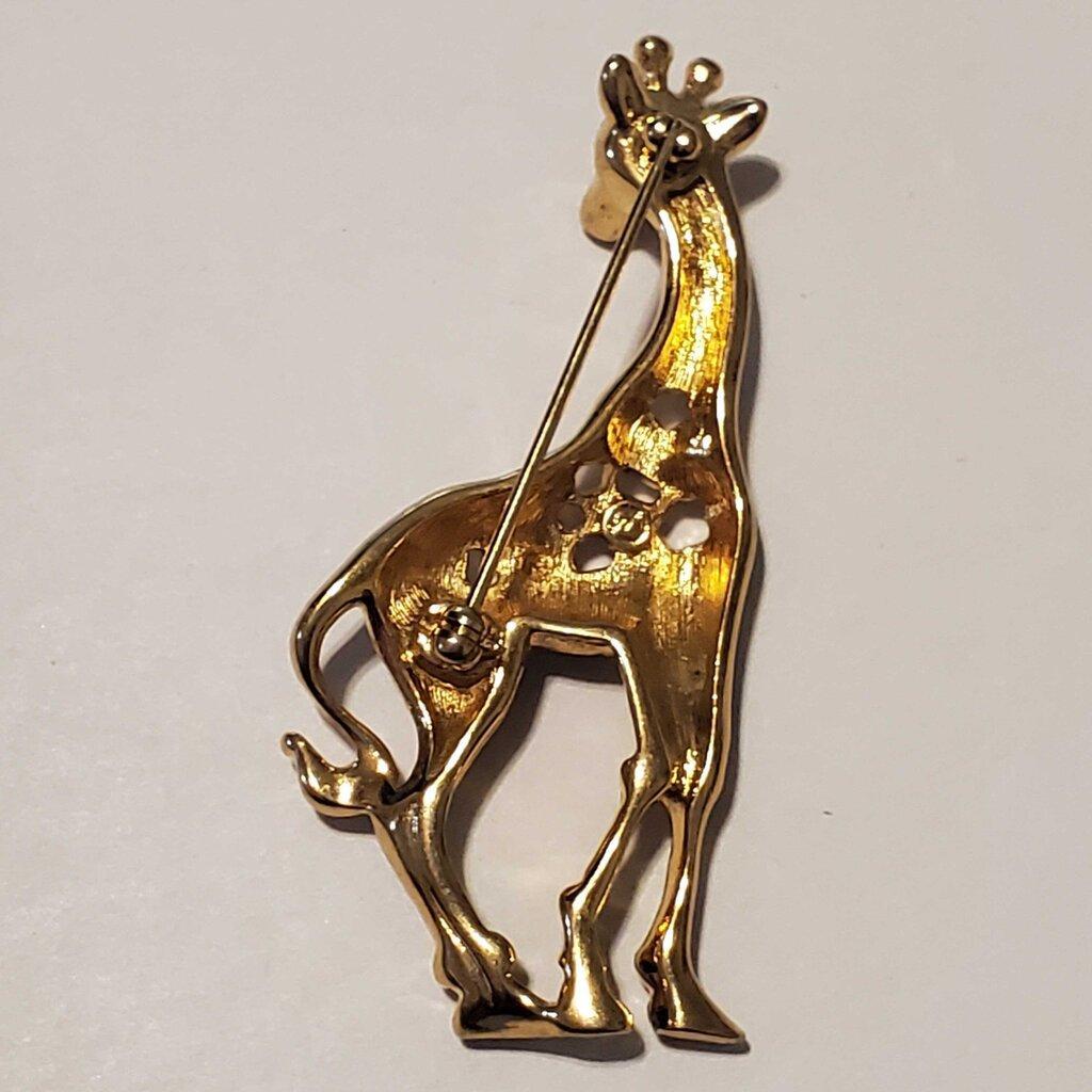 * 90's Swarovski Signed Gold Tone Giraffe Pin Brooch ~ Crystal Rhinestones & Enamel