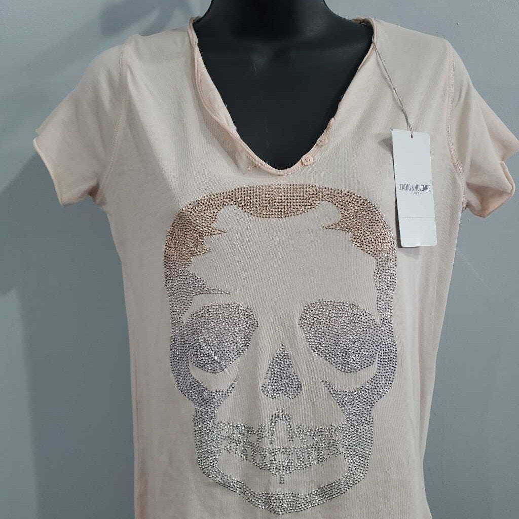 Short Sleeve Bedazzled Skull Knit Top ✅ Triple inspected for quality, condition & authenticity! 💯 Authenticity guaranteed or money back. ❓ Questions? Contact us. 📍 Ships from Enterprise, AL.
